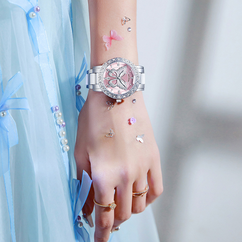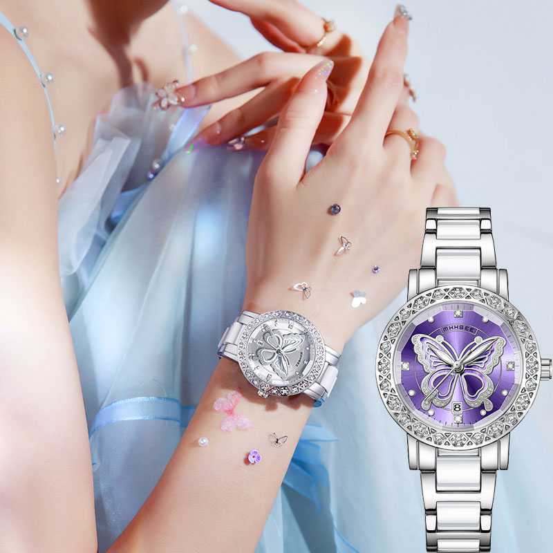 Butterfly Diamond-encrusted Luxury Women's Watch With Calendar And Steel Strap