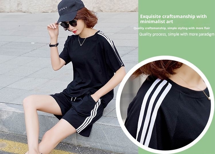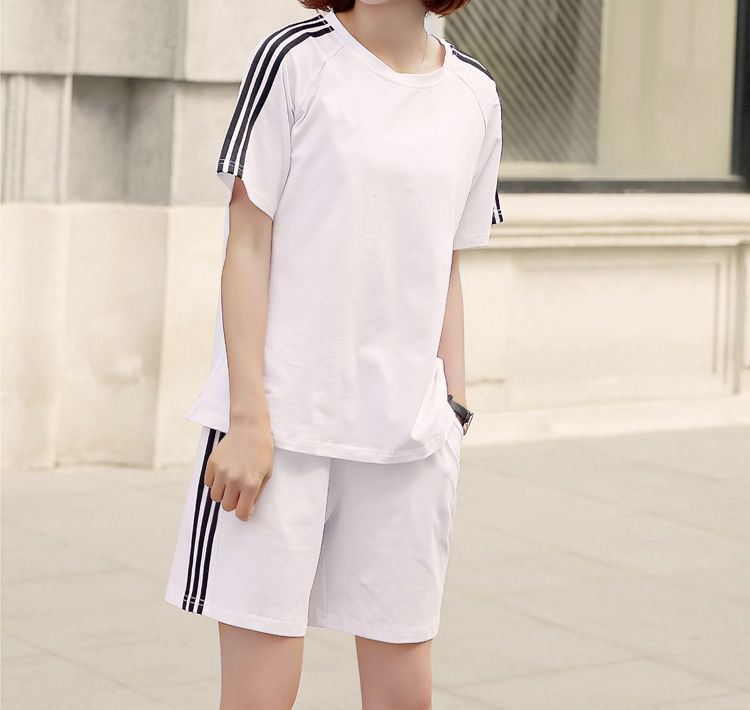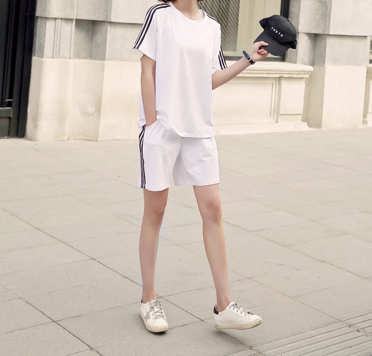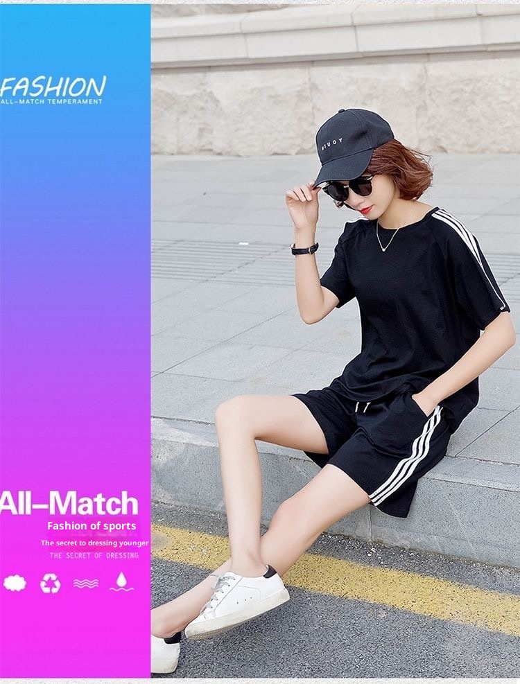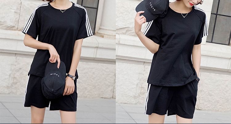 Casual Sportswomen Three-stripe Loose Short Sleeve Shorts Two-piece Set