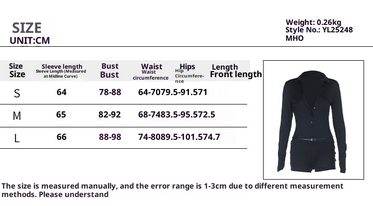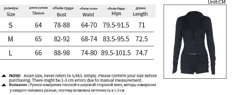 Note: 1. Asian sizes are 1 to 2 sizes smaller than European and American people. Choose the larger size if your size between two sizes. Please allow 2-3cm differences due to manual measurement. 2. Please check the size chart carefully before you buy the item, if you don't know how to choose size, please contact our customer service. 3.As you know, the different computers display colors differently, the color of the actual item may vary slightly from the following images. Packing list: Jumpsuit x 1 pcs Product Image: