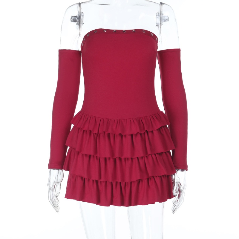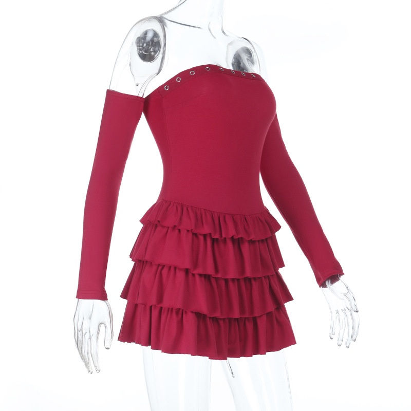 Long-sleeved Bustier Corn One-shoulder Slim Dress