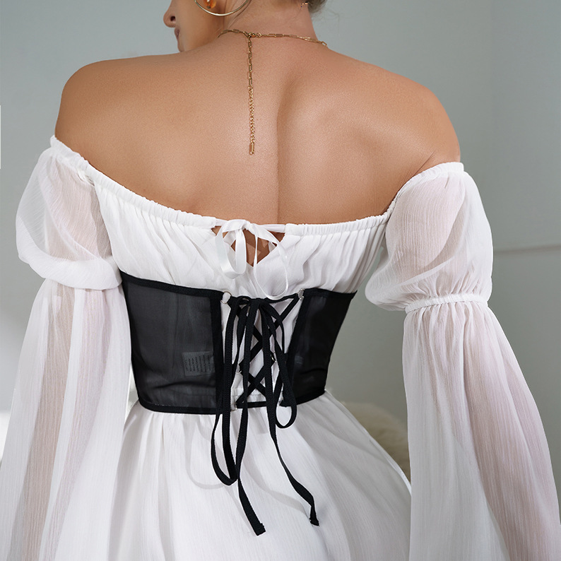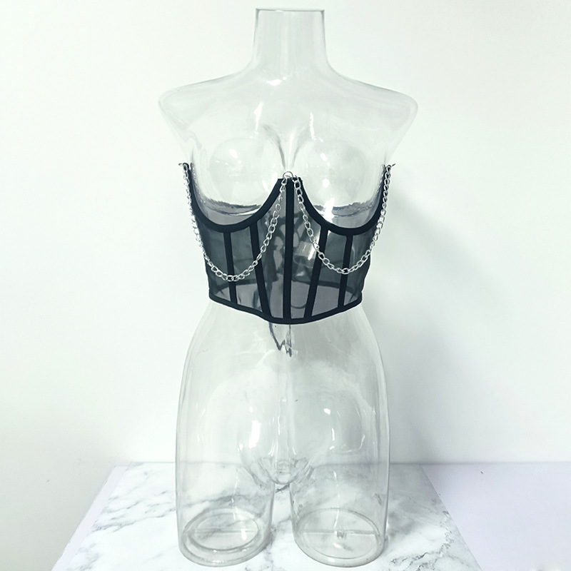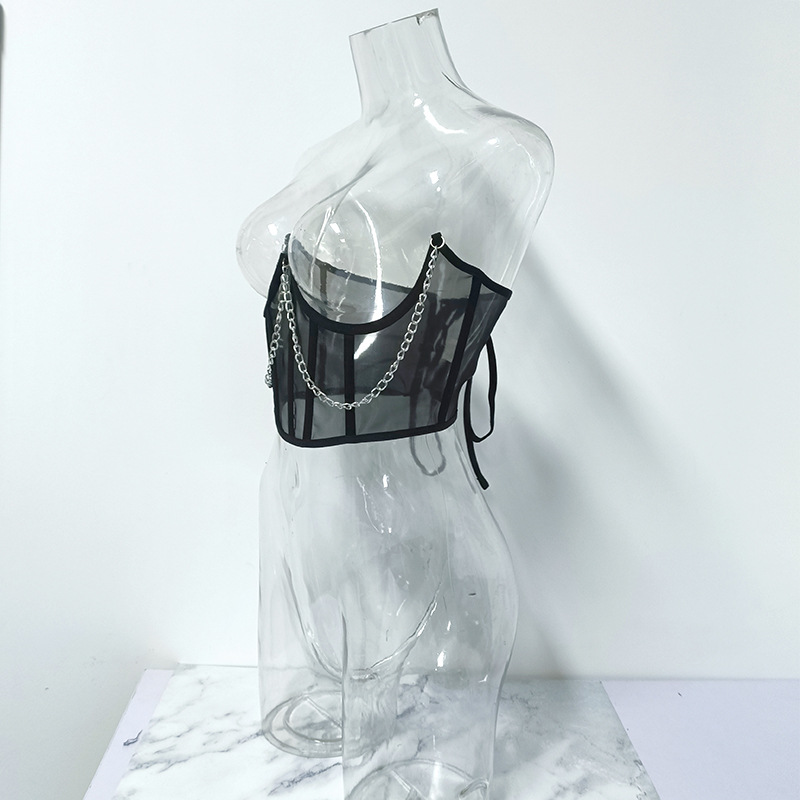 Mesh Spliced Chain Sexy Fishbone Steel Ring Waist Cincher