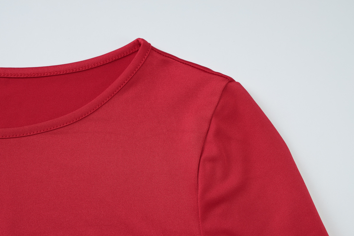 Solid Color Round-neck Long-sleeved Waist-defining Dress For Women