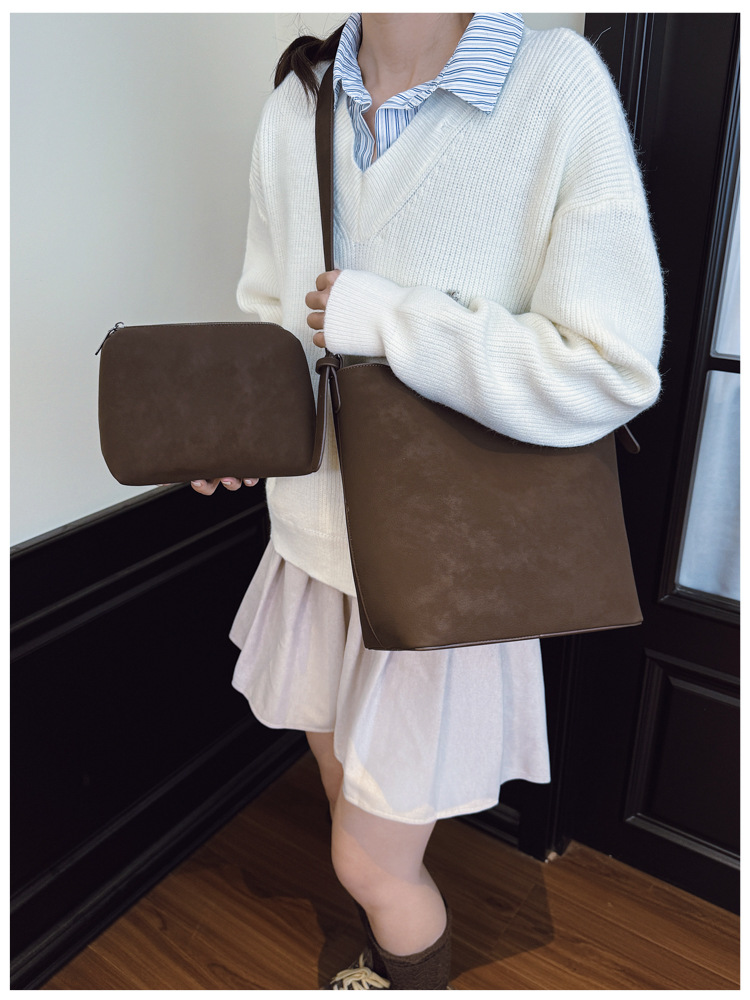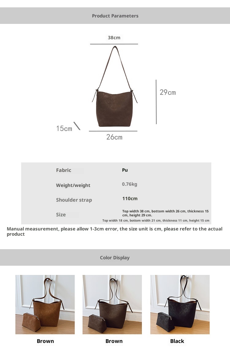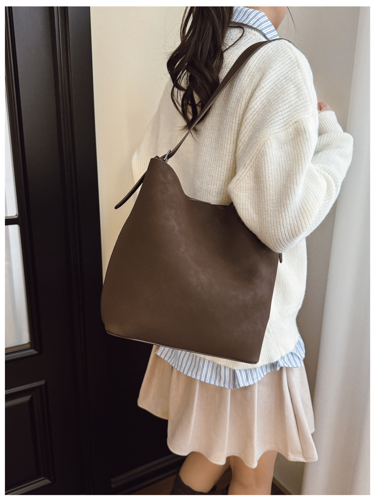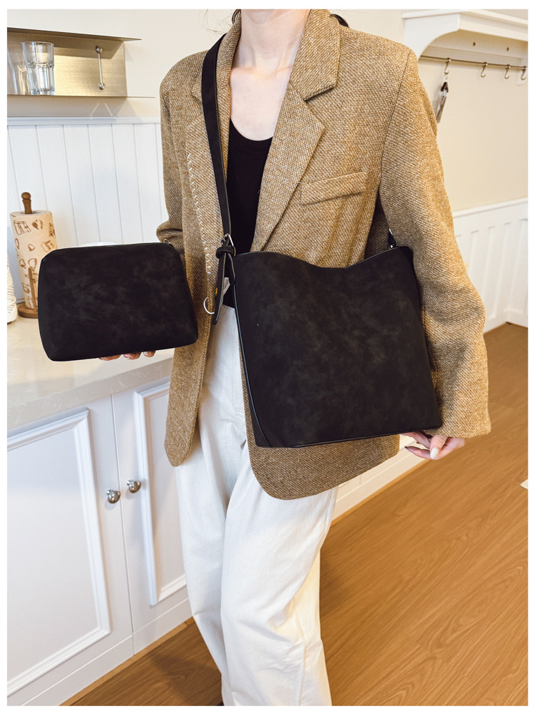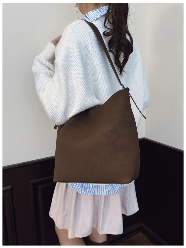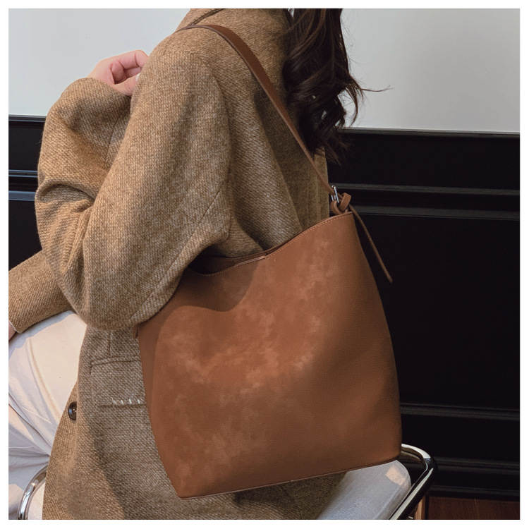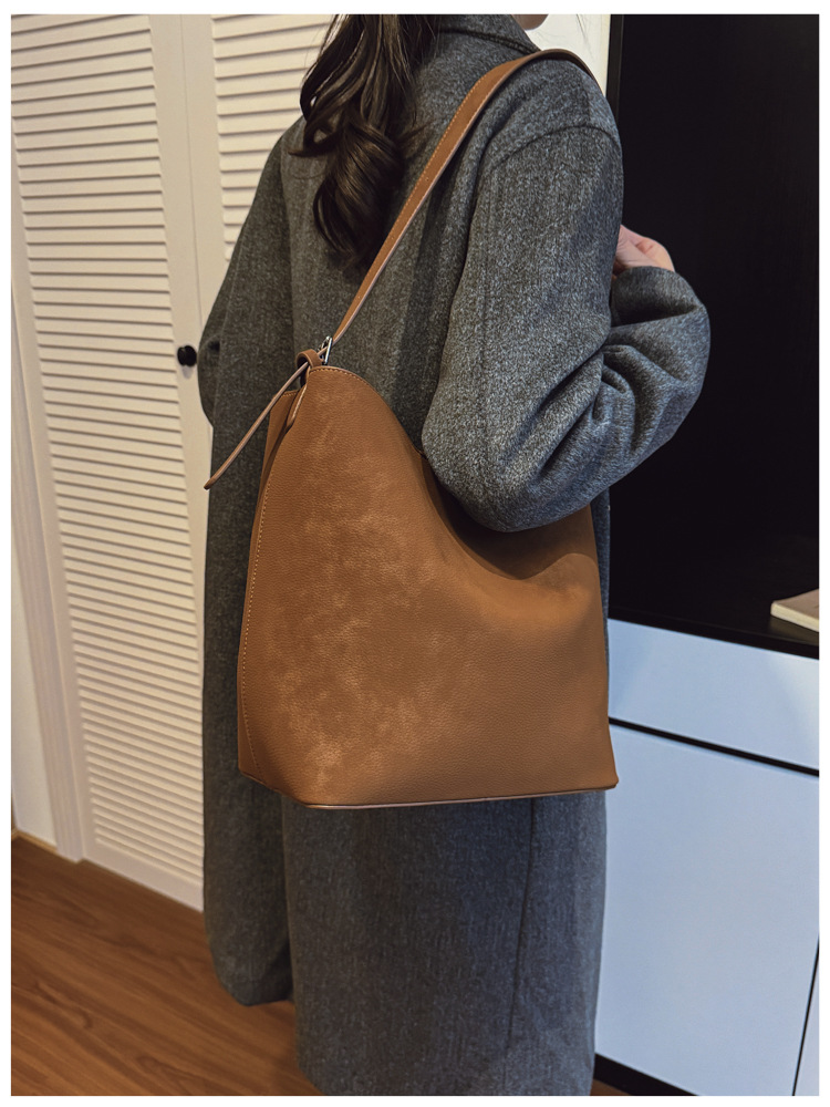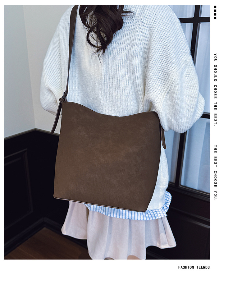 Versatile Retro Matte Women's Single-shoulder Large-capacity Bucket Bag